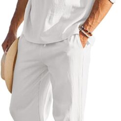 Découvrez cette Geagodelia Ensemble d’été pour homme, 2 pièces, décontracté, pour plage, combinaison complète en coton et lin, T-shirt à manches longues, avec cordon de serrage au prix imbattable de : 41,23€